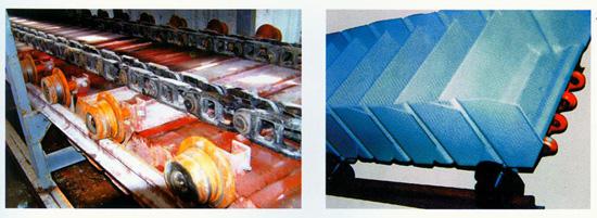 SCD槽式熟料输送机优点: 1、水平和倾斜输送干燥粒状物料。 2、倾斜角≤60°。 3、输送距离可达150m,提升高度可达60m。 4、输送能国75m3/h-240m3/h。 5、牵引链采用模锻成型链板,强度高、寿命长。 6、承载与牵引分开的结构,使输送机受力合理、运行平稳。 7、物料温度≤250℃。 8、适宜物料料度50mm,粒度200mm。